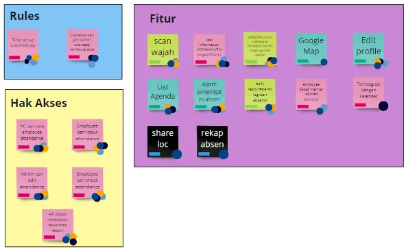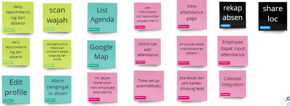Mencari ide sebanyak-banyak nya, memikirkan fitur apa yang sekiranya cocok, bisa menyelesaikan permasalahan yang sudah ditemukan sebelumnya. Ini hasil brainstorming timku: