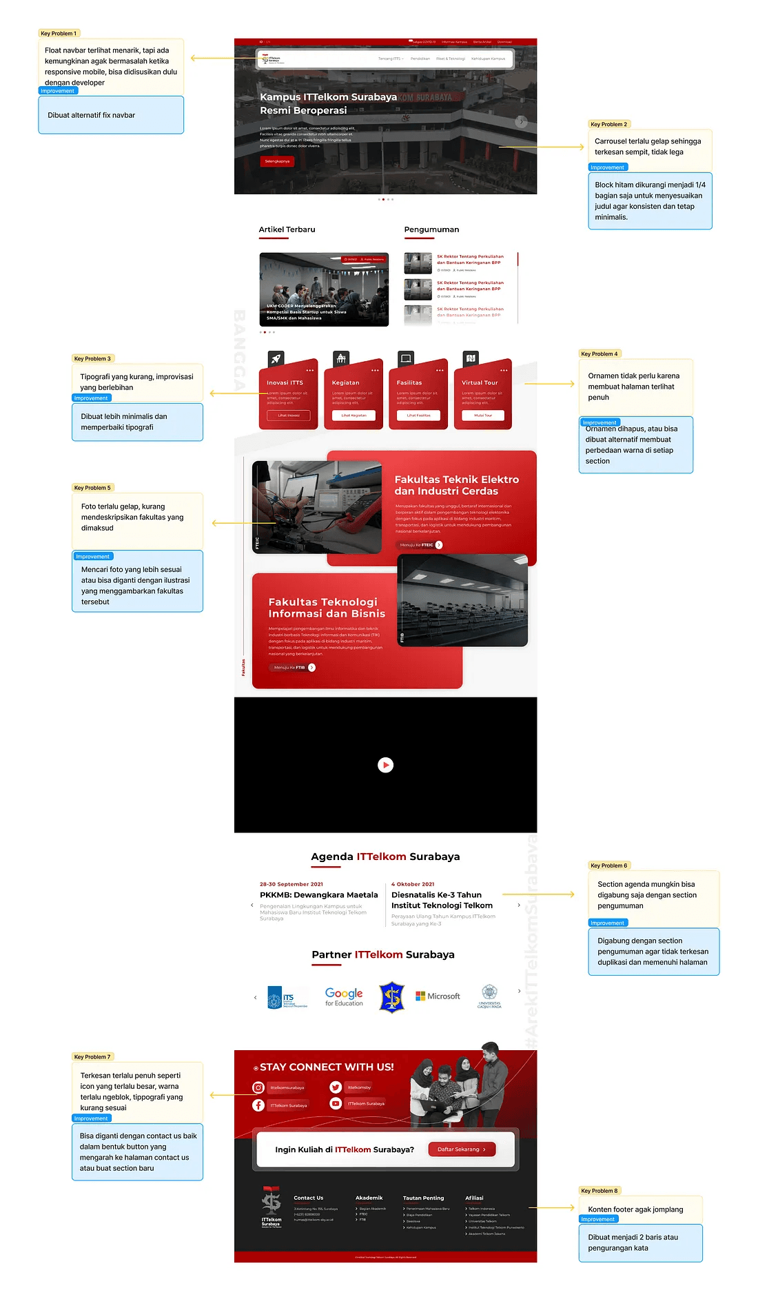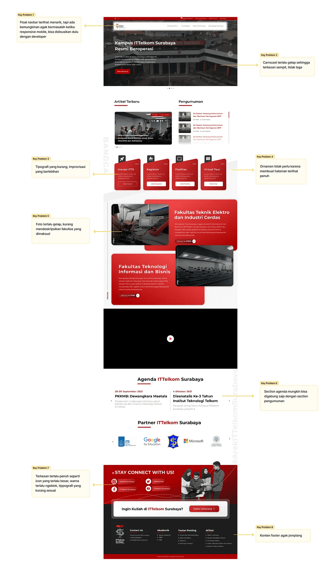 Selanjutnya kita akan mulai mengidentifikasi area masalah pada desain existing. Mulai dari visual, bug, inkonsistensi, layout, dsb.