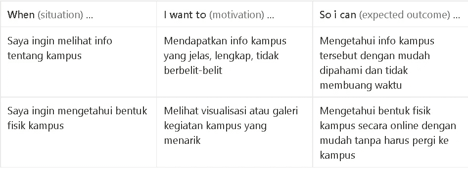Calon mahasiswa melakukan pencarian info kampus karena untuk menambah pengetahuan tentang kampus dengan cara membuka website, mencari info yang ingin diketahui, jika tertarik maka akan diarahkan ke halaman pendaftaran2. DefineSalah satu cara untuk melakukan empathy terhadap user yaitu dengan membuat persona. Dengan membuat persona ini, harapannya kita sebagai desainer dapat mengerti ekspetasi dan keinginan dari user.